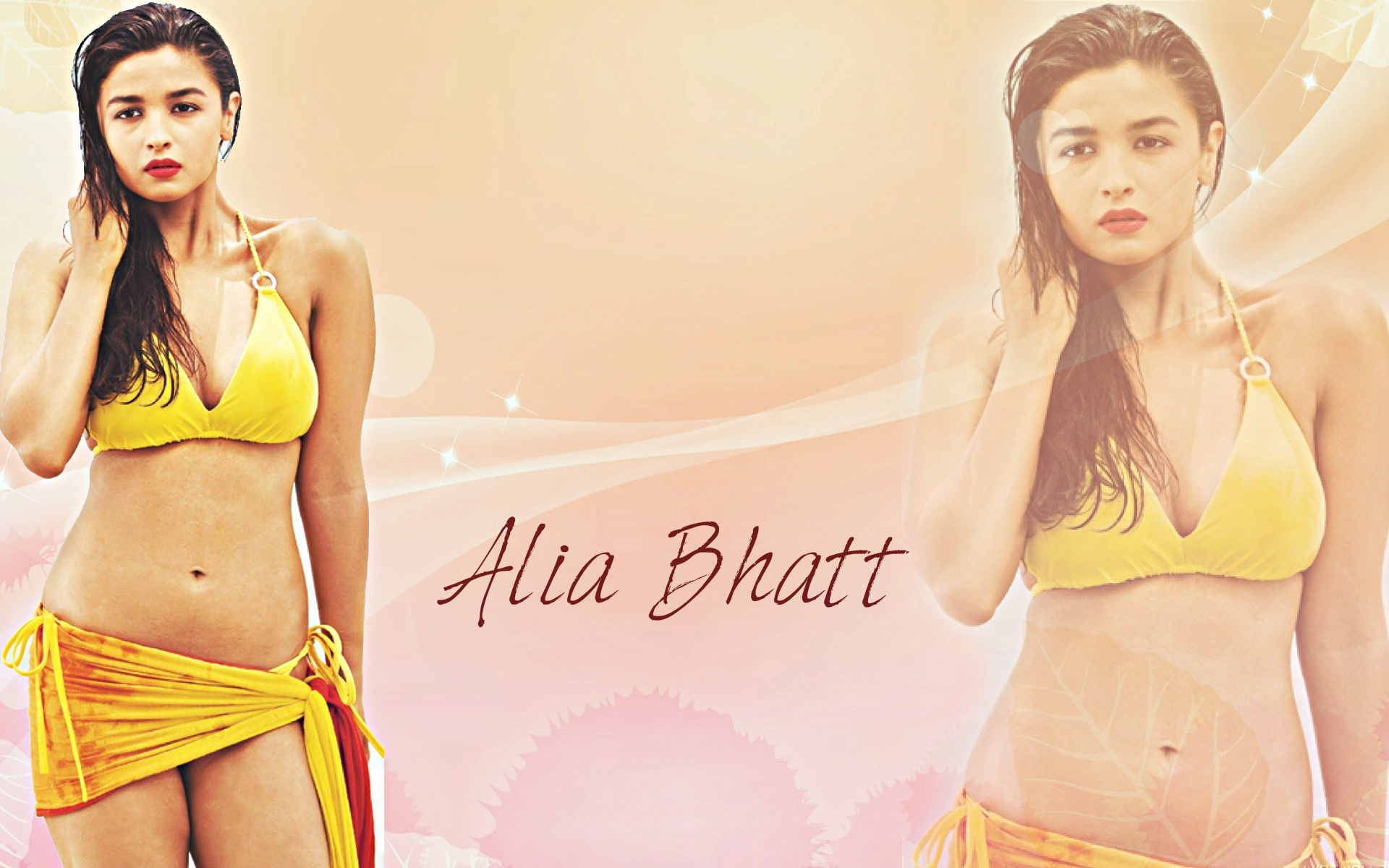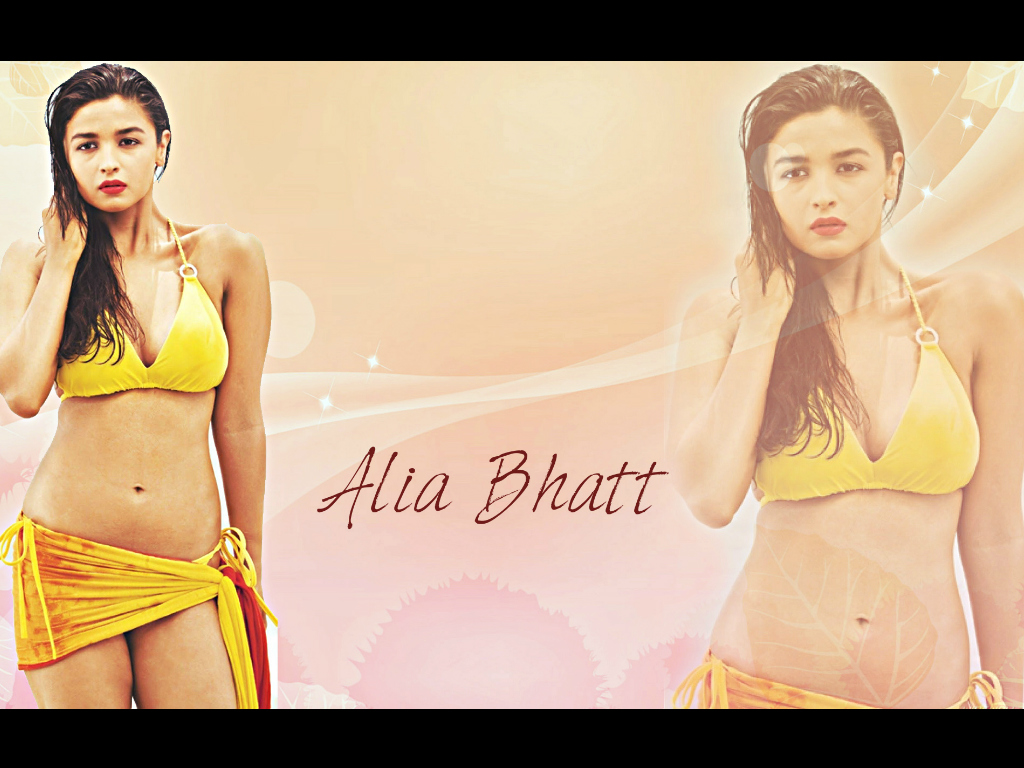 Download Wallpaper of Bollywood Actress Alia Bhatt in Yellow Bikini.